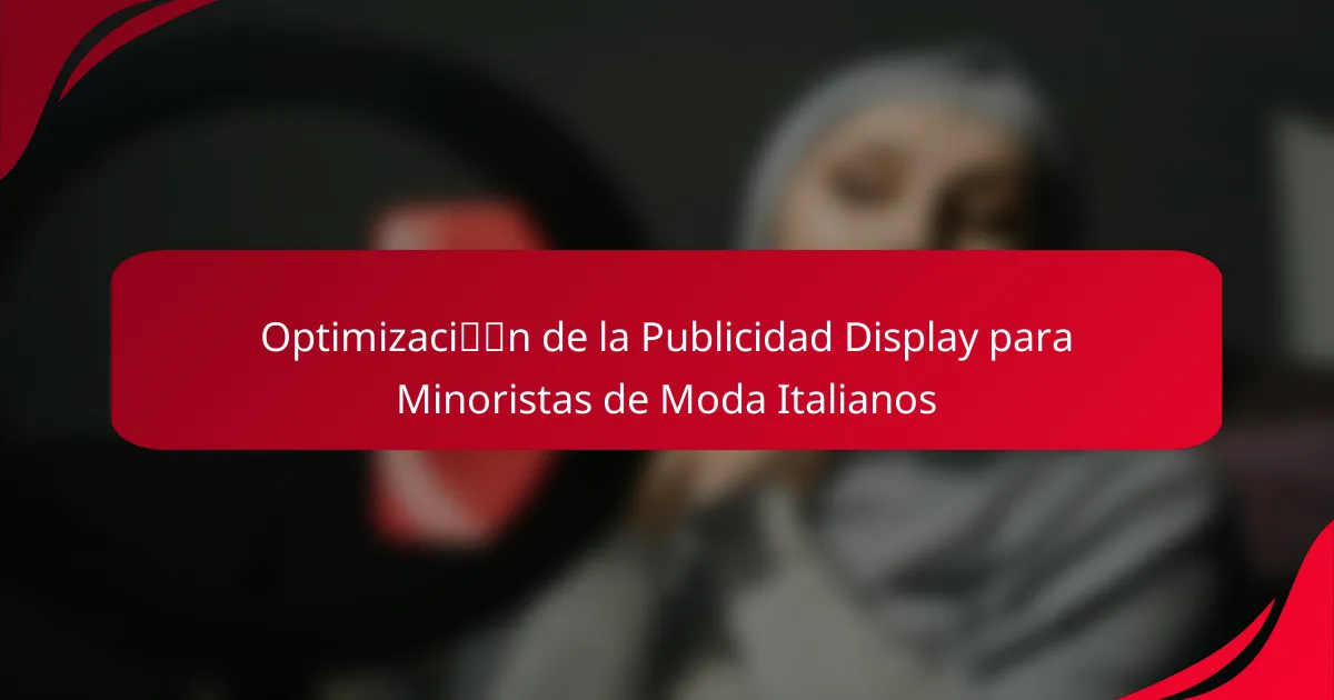 Los minoristas de moda italianos pueden optimizar la publicidad display al centrarse en la segmentación de audiencia específica, aprovechar visuales de alta calidad, implementar estrategias de retargeting y optimizar la colocación de anuncios en plataformas de moda. Estas estrategias mejoran las tasas de participación y conversión, impulsando en última instancia las ventas.